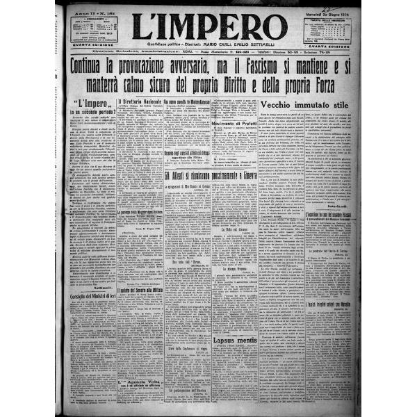 L' impero : quotidiano politico - 1924/n.151/1