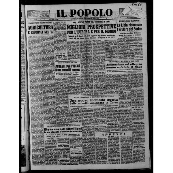Il popolo : giornale del mattino - 1952/n.2/001