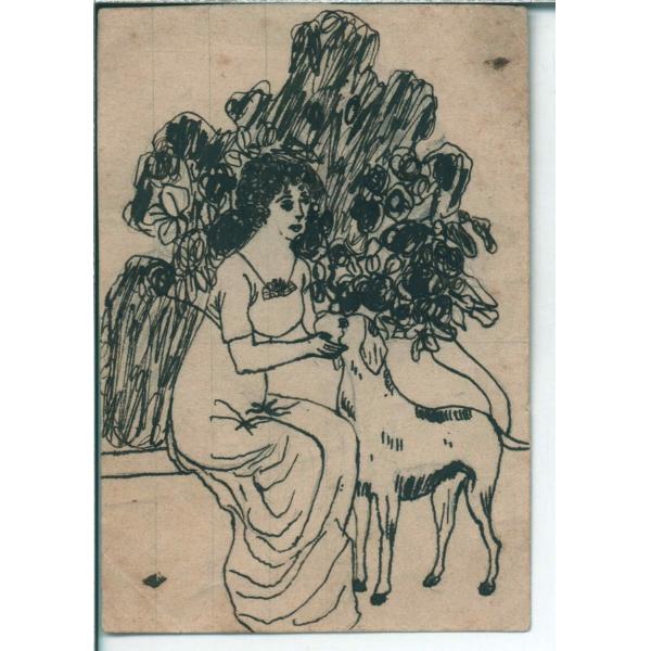 Disegno a china di donna con cane