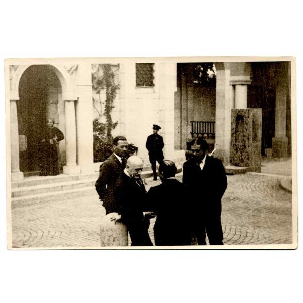 Fotografia di Gabriele D'Annunzio mentre parla ad alcune persone
