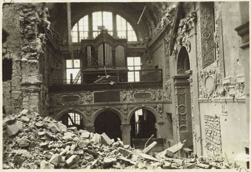 La chiesa di Castagnevizza bombardata.