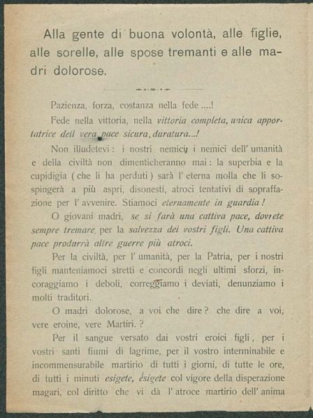 Alla gente di buona volontà, alle figlie, alle sorelle, alle spose tremanti e alle madri dolorose