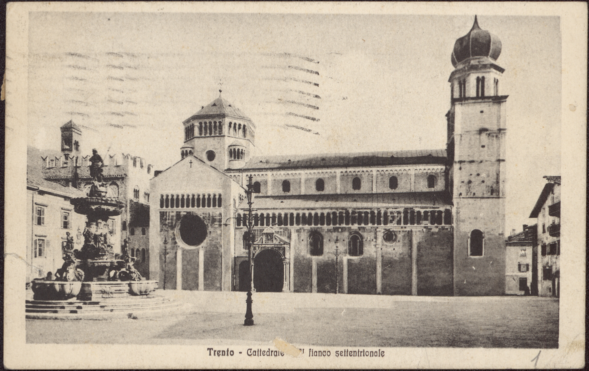 Reparto fotocinematografico dell'Esercito, Riproduzioni fotografiche di cartoline Alinari raffiguranti chiese, basiliche e monumenti dell'Umbria, di Trento e di Trieste, Cartolina raffigurante il fianco settentrionale della Cattedrale di Trento