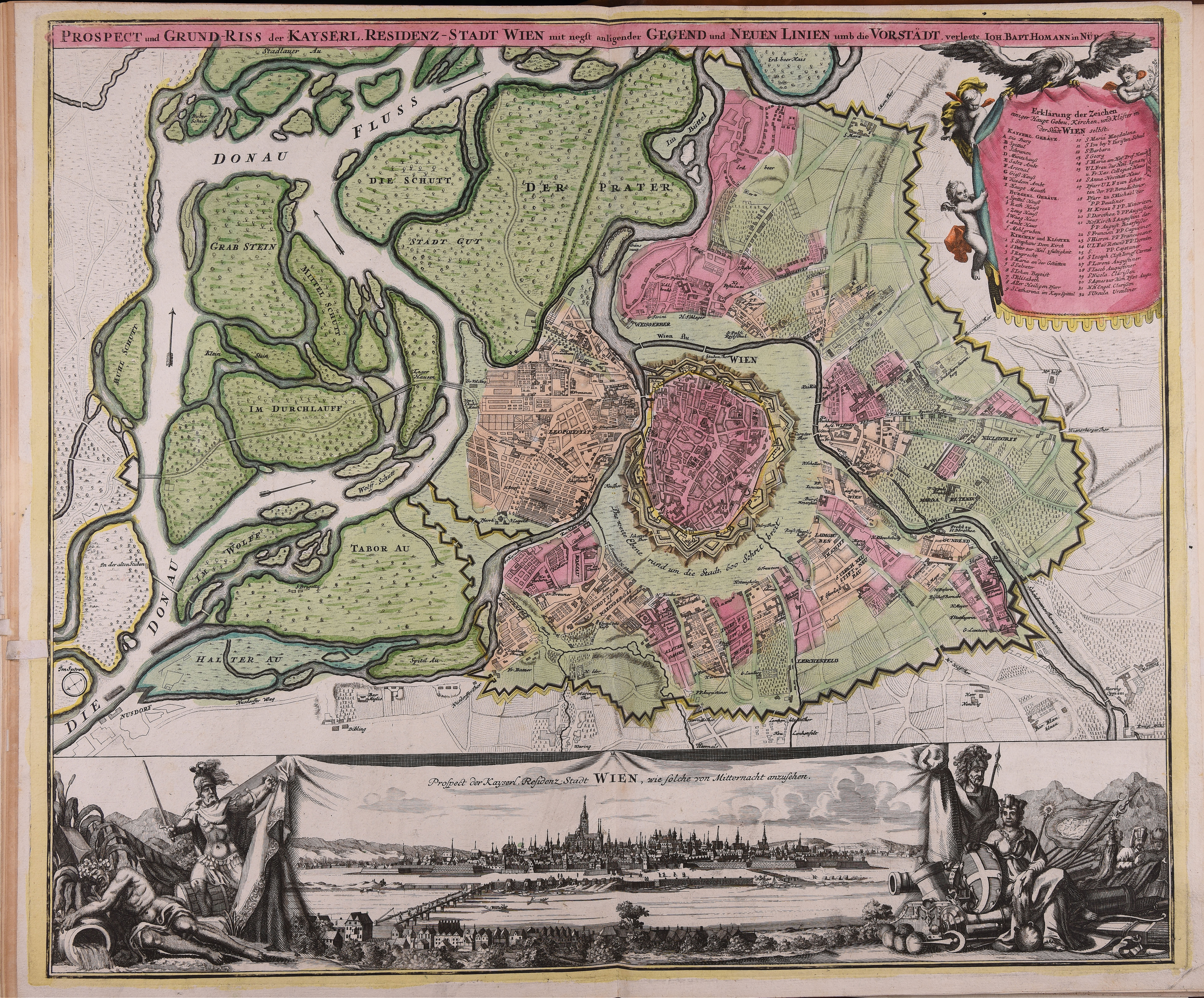 Prospect und Grund-riss der Kayserl. Residenz-Stadt Wien mit negst anligender Gegend und neuen Linien umb die Vorstädt
