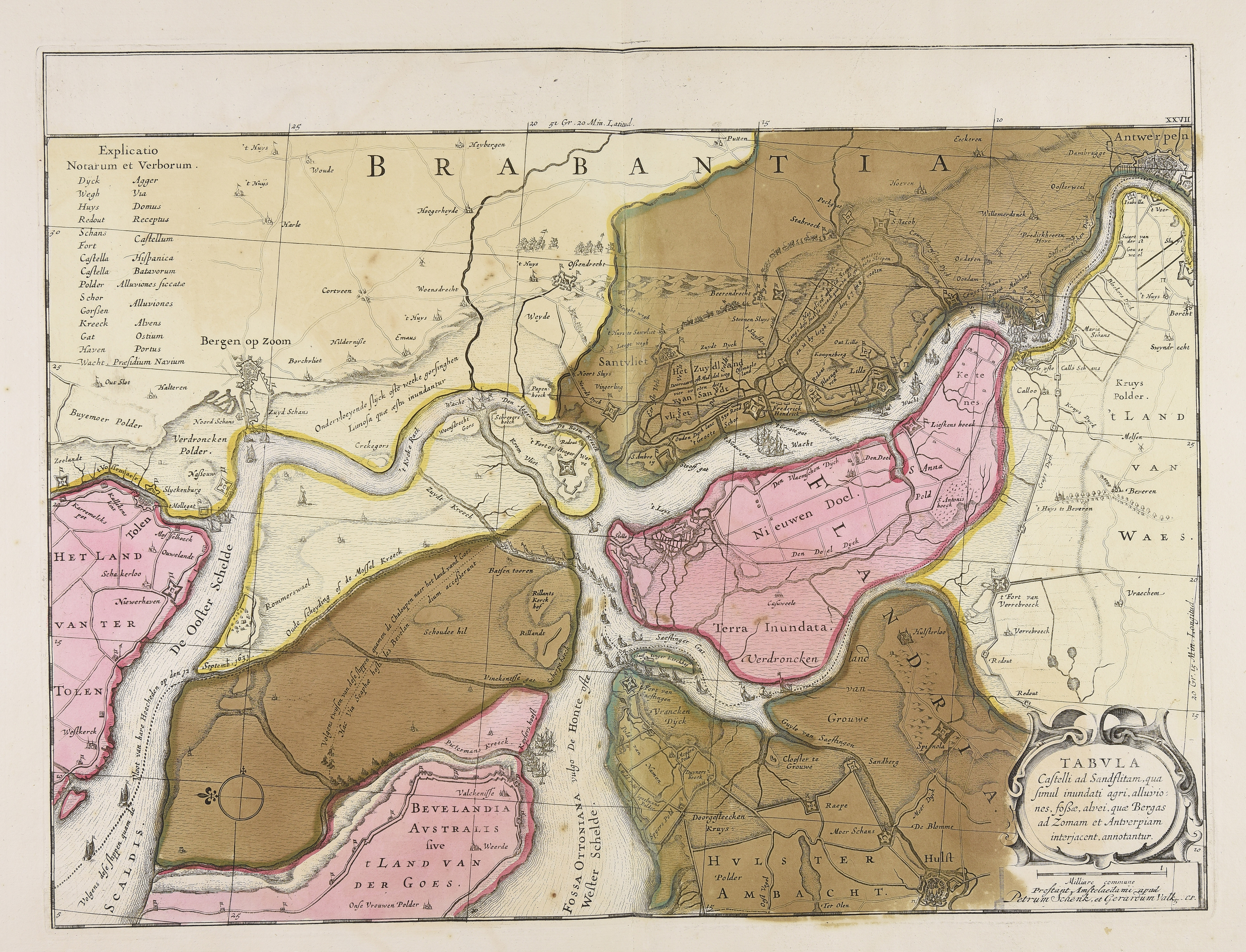 Tabula Castelli ad Sandflitam qua simul inundati agri, alluviones, fossae, alvei, quae Bergas ad Zomam et Antverpiam interjacent annotantur