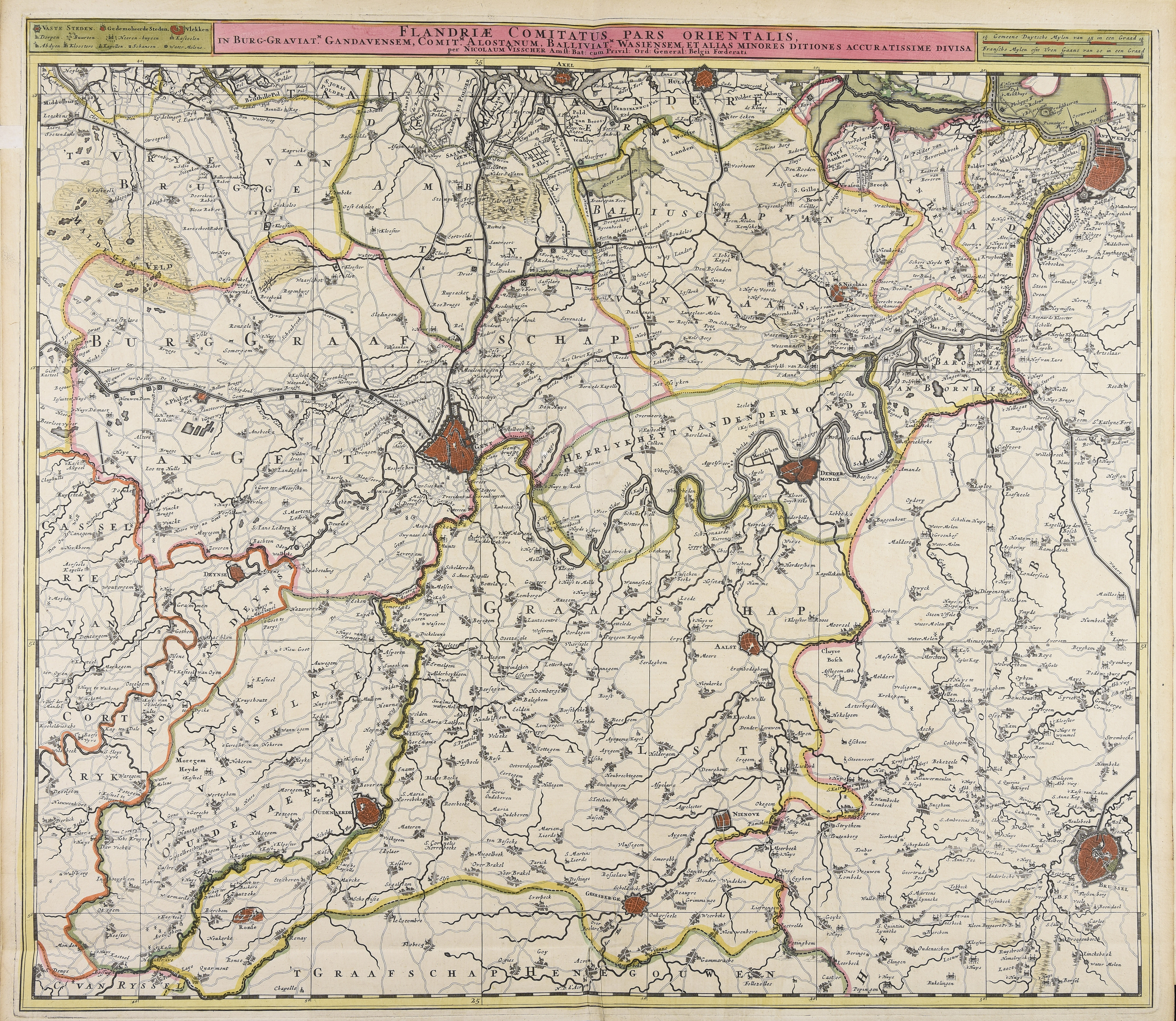 Flandriae comitatus pars orientalis in Burg-Graviatm. Gandavensem, Comitm. Alostanum, Balliviatm. Wasiensem et alias minores ditiones accuratissime divisa