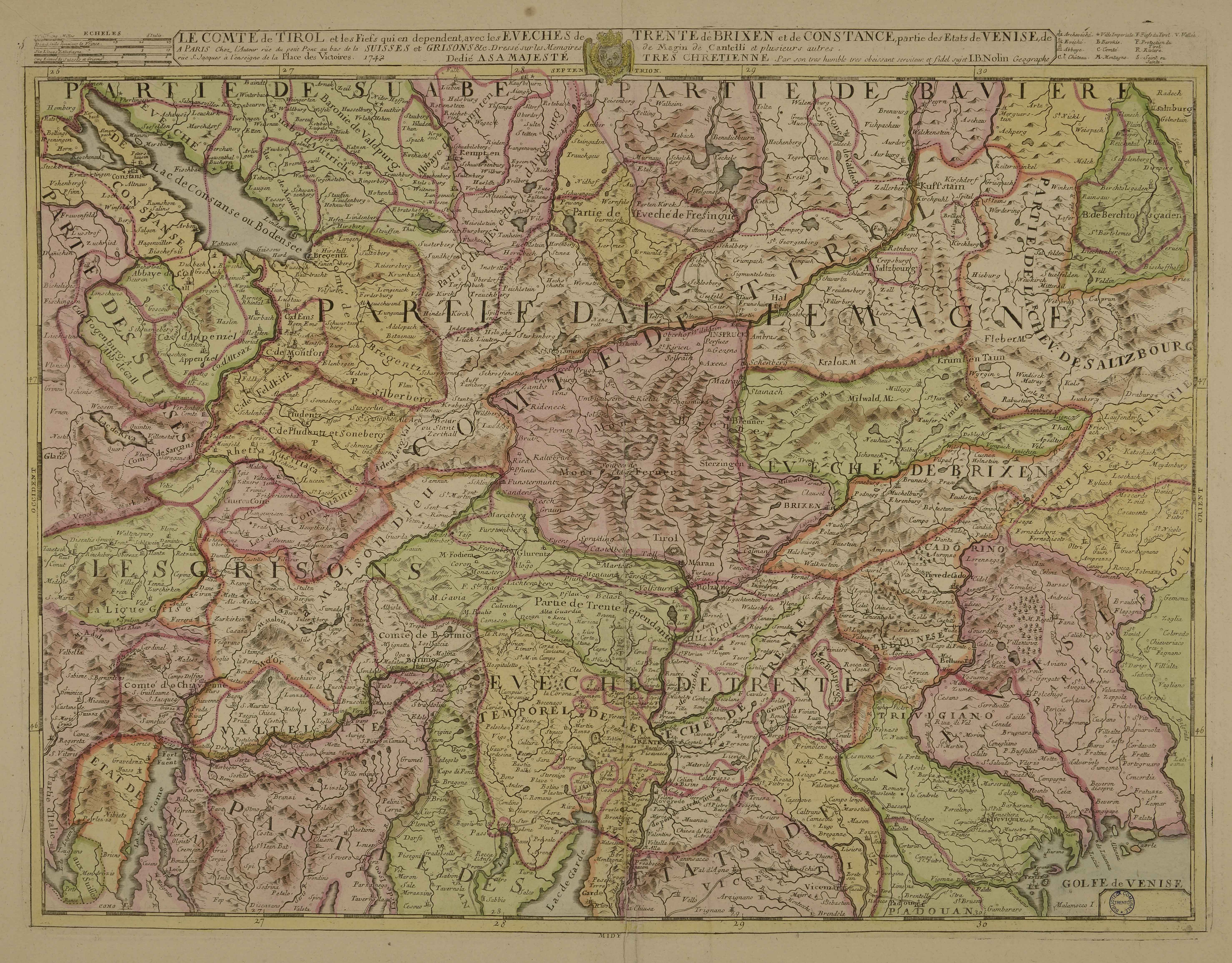 Le comté de Tirol et les fiefs qui en dependent, avec les eveches de Trente de Brixen et de Constance, partie des etats de Venise, de Suisse et Grisons ec.