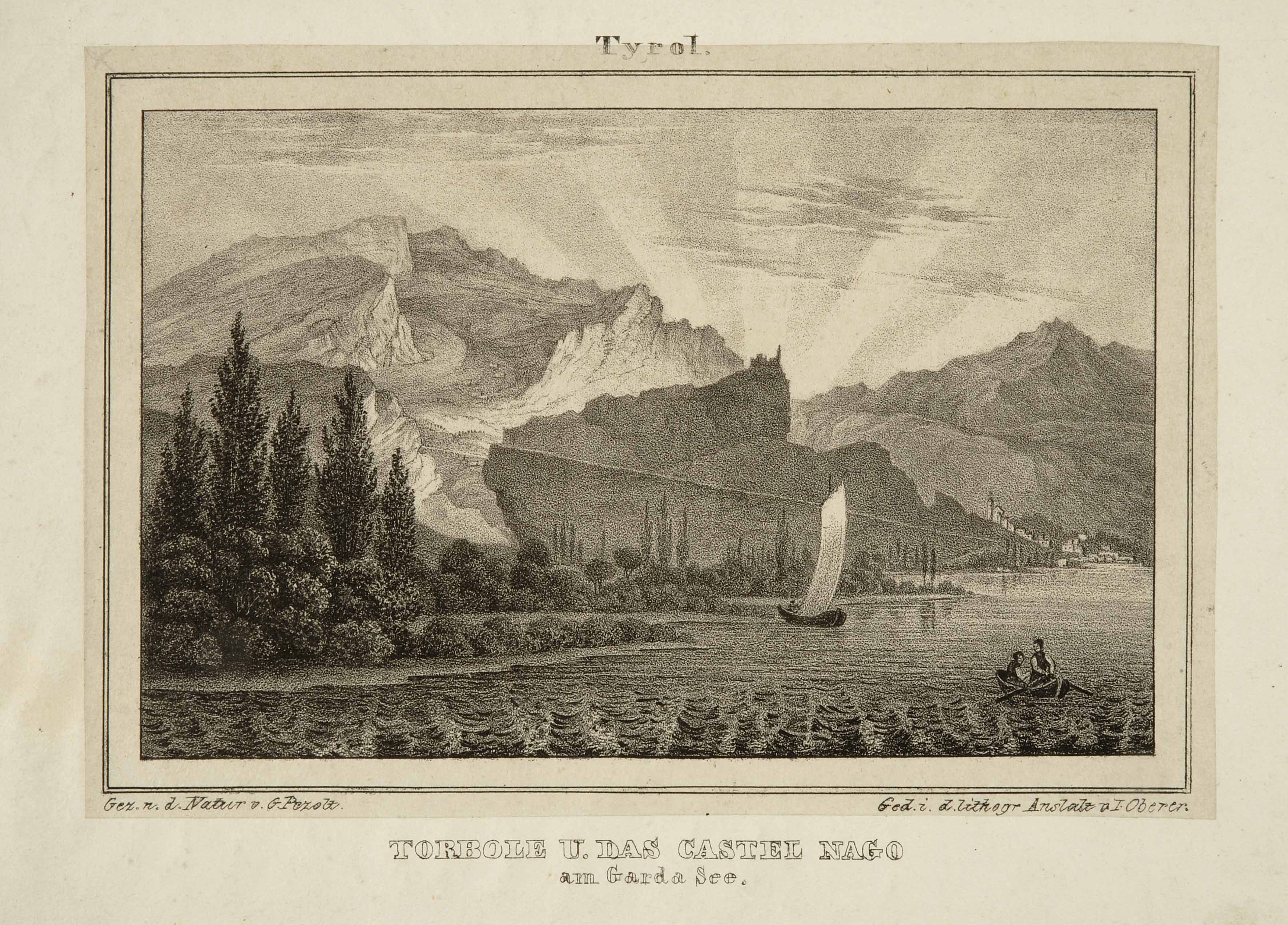 Litografia, 97x152 mm. Disegno di Georg Pezolt, pubblicata probabilmente tra il 1830 e il 1840 (cfr. Ugo Spini, Tebaldo Sinistri, Il Garda nelle sue stampe, Brescia, Grafo, 2000, pp. 91-92)
