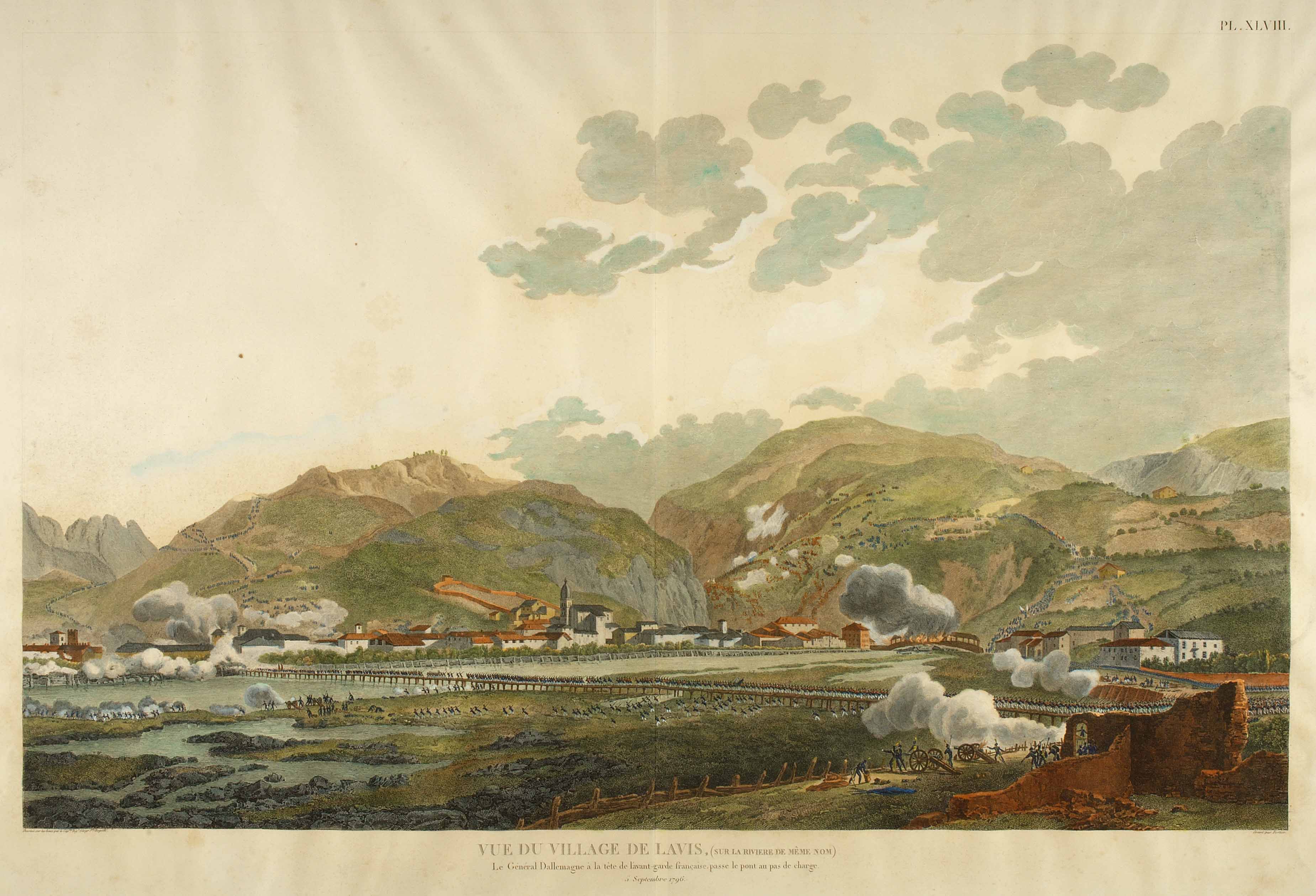 Vue du village de Lavis, (sur la riviere de meme nom). Le général Dallemagne à la tète de l'avant-garde francaise ...