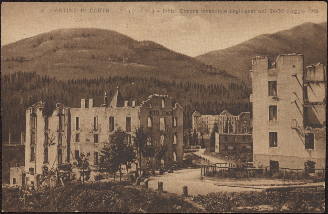 S. Martino di Castrozza (1444 m.) - Hotel Cimone incendiato dagli austriaci 24-30 maggio 1915