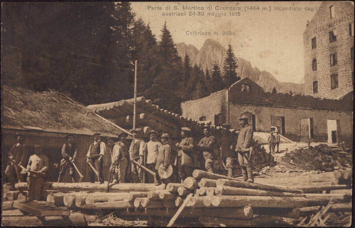 Parte di S. Martino di Castrozza (1444 m.) incendiato dagli austriaci 24-30 maggio 1915