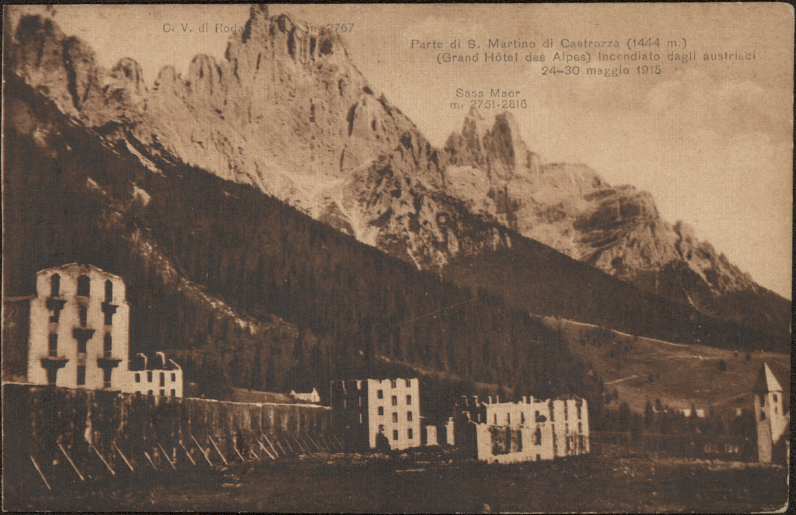 Parte di S. Martino di Castrozza (1444 m.) (Grand Hotel des Alpes) incendiato dagli austriaci 24-30 maggio 1915