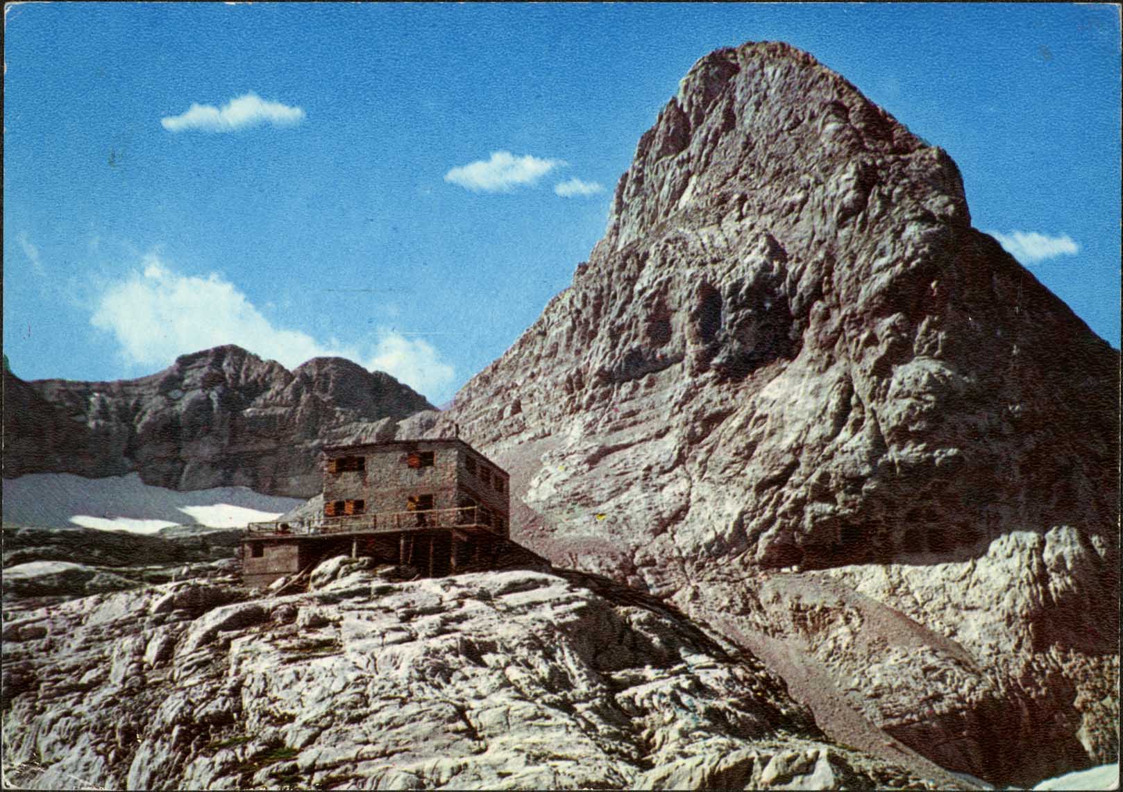 Dolomiti di Brenta (Trentino) Rifugio XII Apostoli m. 2489 con Cima omonima e Chiesetta alpina