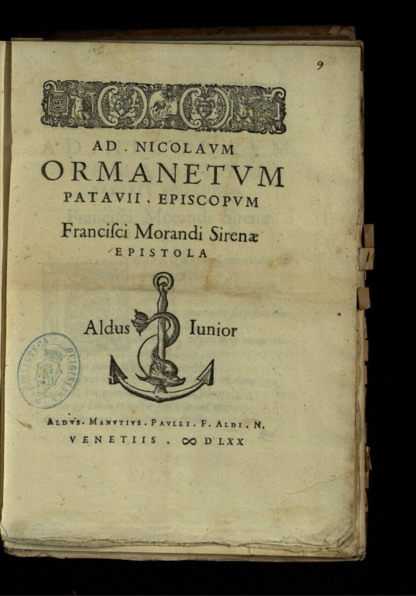 Ad. Nicolaum Ormanetum Patauii. Episcopum Francisci Morandi Sirenae Epistola