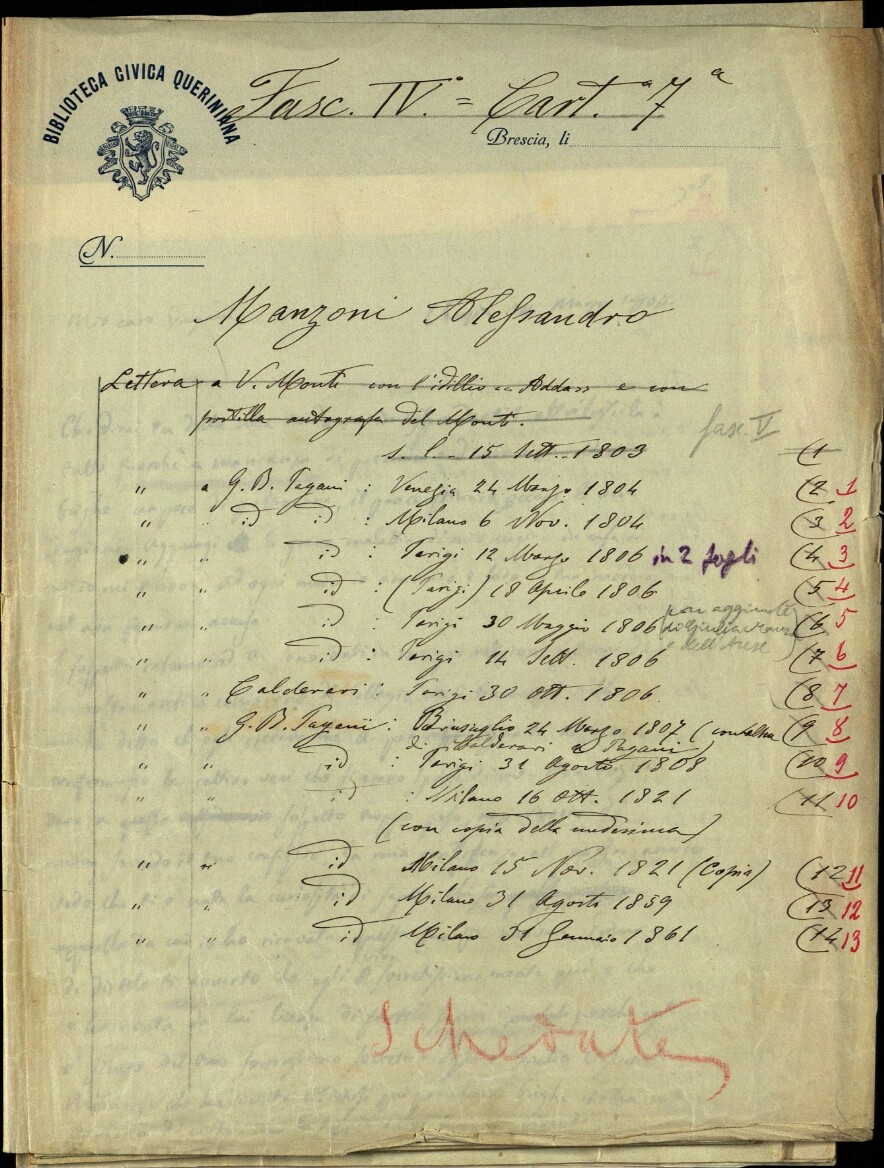 Scrittura e mani: Manzoni, Alessandro. Stato di conservazione: buono