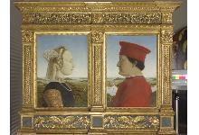 Le tavolette con i ritratti di Federico da Montefeltro e Battista Sforza hanno sul verso i rispettivi trionfi. I due dipinti furono eseguiti, probabilmente per la sala delle Udienze del Palazzo Ducale di Urbino, entro il 1465. In quell'anno infatti il letterato Ferabo che si trovava ad Urbino, ricorda il ritratto del duca in un carme, reso noto solo nel 1905 dal Cinquini. Nonostante questa citazione, accettata dalla maggior parte della critica, diversi studiosi hanno dibattuto sulla datazione delle due tavolette.