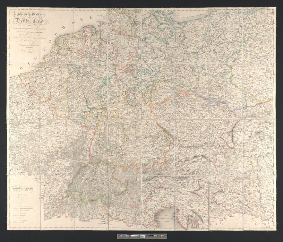 Allgeneine und Postkarte von Deutschland und den andraenzenden Laendern nach den besten und neuesten Hülfsmitteln…
