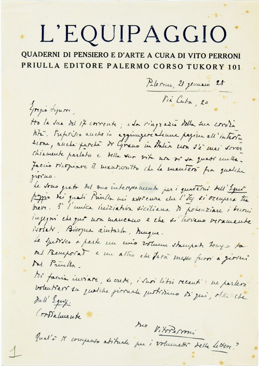 Lettere di Perroni, Vito (1928 - 1934)