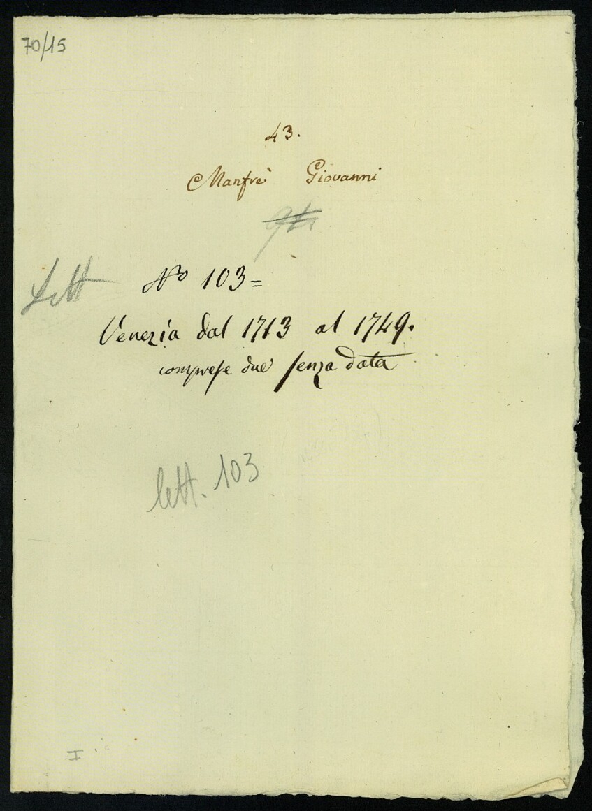 Lettere di Manfré, Giovanni a Lodovico Antonio Muratori (1713 - 1749)