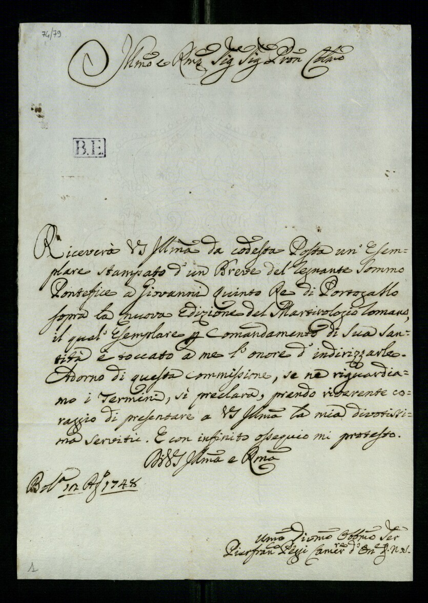 Lettera di Peggi, Pier Francesco a Lodovico Antonio Muratori (1748)