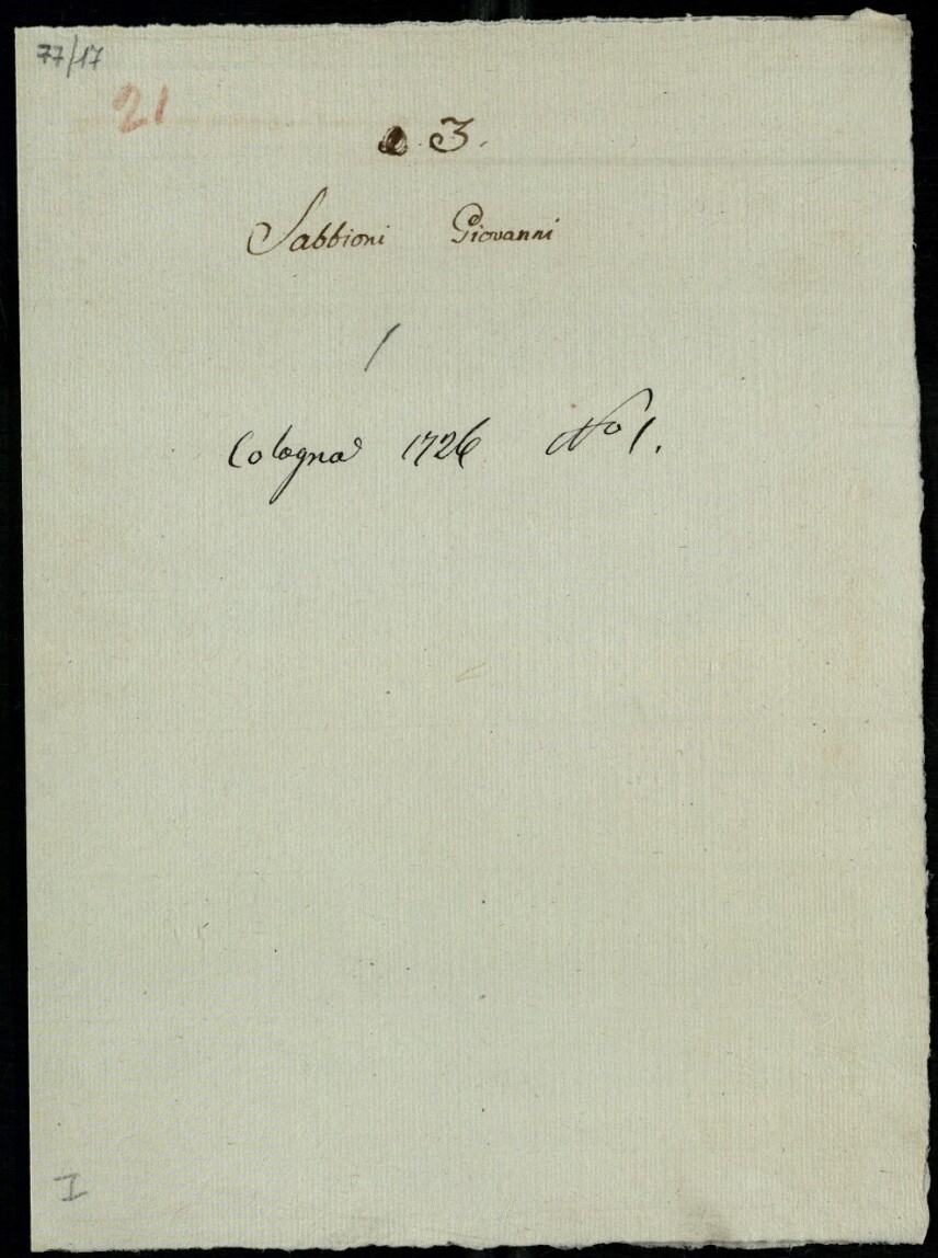 Lettera di Sabbioni, Giovanni a Lodovico Antonio Muratori (1726)