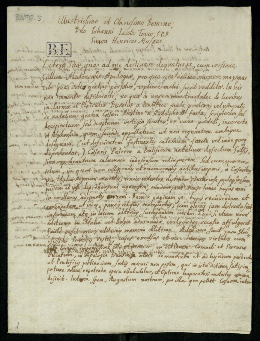 Lettera di Musaeus, Simon Heinrich a Tovius, Iohann Iacob (1710)