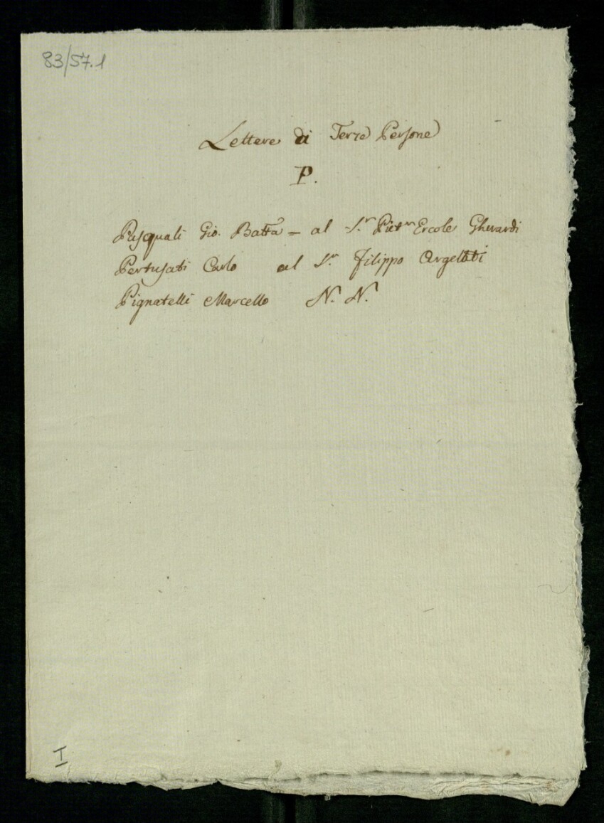Lettera di Pasquali, Giovanni Battista a Gherardi, Pietro Ercole (s.d.)
