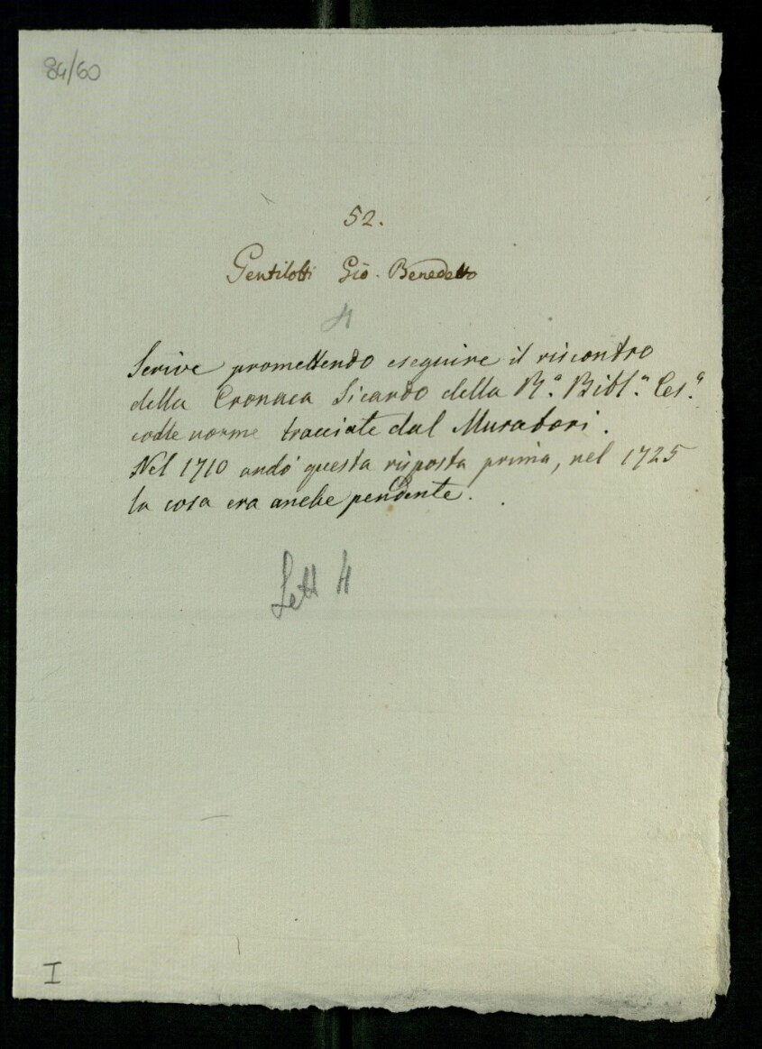 title=Muratori, Lodovico Antonio; URL=http://viaf.org/viaf/68933348, Lettere di Muratori, Lodovico Antonio a Gentilotti d'Engelsbrunn, Giovanni Benedetto Minute di Muratori (s.d.)