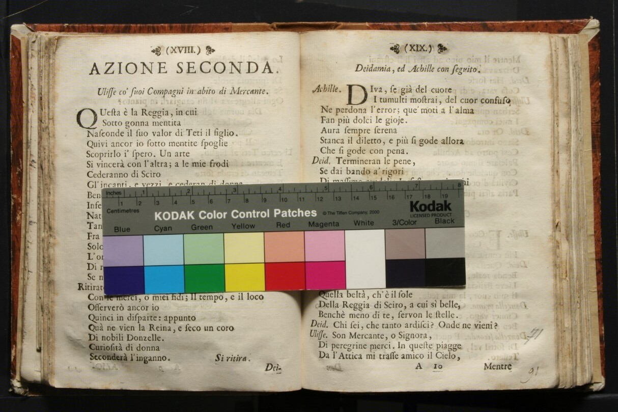 L'Achille. O sia la virtu risvegliata. Accademico tributo umilmente offerto all'eccelso trono delle serenissime altezze di Brunsvich, e di Modona da' signori convittori del Collegio de' Nobili.-In Modona : per Bartolomeo Soliani ..., 1702.