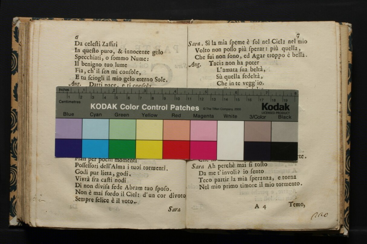 L'Abramo oratorio per musica da cantarsi in corte di sua altezza serenissima.-In Modena : per Bartolomeo Soliani, 1726.