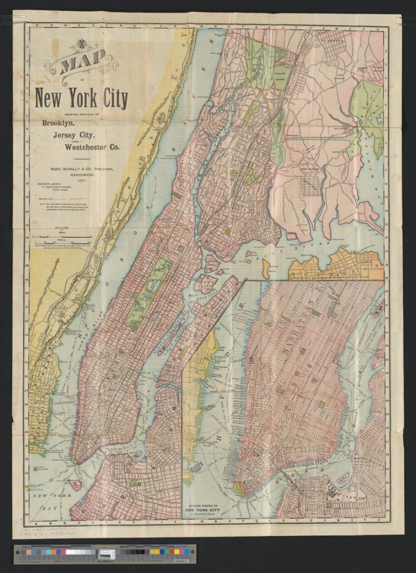 MAP OF New York City SHOWING PORTIONS OF Brooklyn, Jersey City, Westchester Co. RAND, McNALLY CO., PUBLISHERS, CHICAGO, 1897. / Rand, MacNally co.'s Guide Map OF New York City
