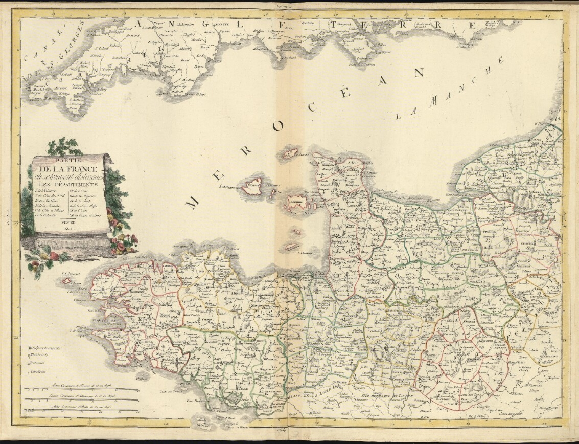 PARTIE DE LA FRANCE où se trouvent distinguès LES DÈPARTEMENTS I. de Finisterre II. Des Côtes du Nord III. Du Morbihan IV. De la Manche V. de l’Ille et Vilaine VI. Du Calvados VII. de l’Orne VIII. De la Mayenne IX. de la Sarte X. de la Seine Inter XI. de l’Eure XII. de l’Eure et Loire VENISE 1801
