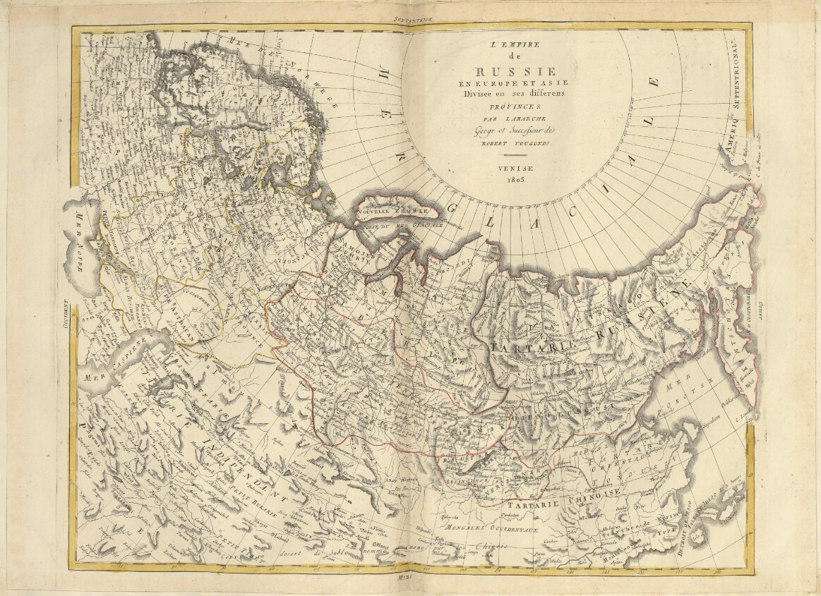 L’EMPIRE de RUSSIE EN EUROPE ET ASIE Divisee en ses differens PROVINCES PAR LAMARCHE Geogr.(aphe) et Successeur de ROBERT VOUGONDJ VENISE 1803.