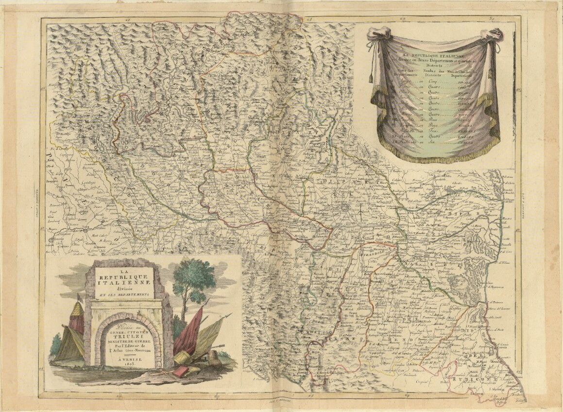 LA REPUBLIQUE ITALIENNE DIVISÉE EN SES DEPARTEMENTS Dediée au GENER.(ALE) CITOYEN TRIULZI MINISTRE DE GUERRE Par l'Editeur de l'Atlas tres-Nouveau À VENISE 1803