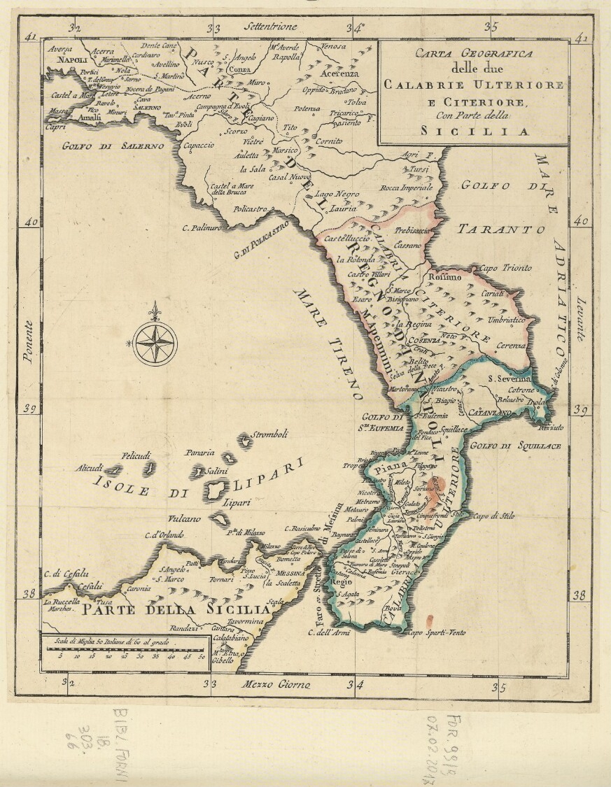 CARTA GEOGRAFICA delle due CALABRIE ULTERIORE E CITERIORE, Con Parte della SICILIA