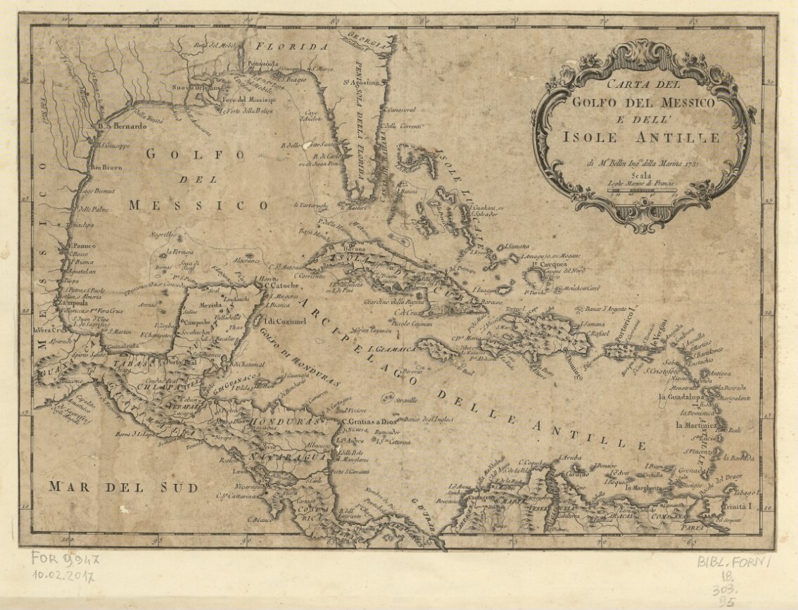 CARTA DEL GOLFO DEL MESSICO E DELL'ISOLE ANTILLE di Mr. Bellin Ing.re della Marina 1781