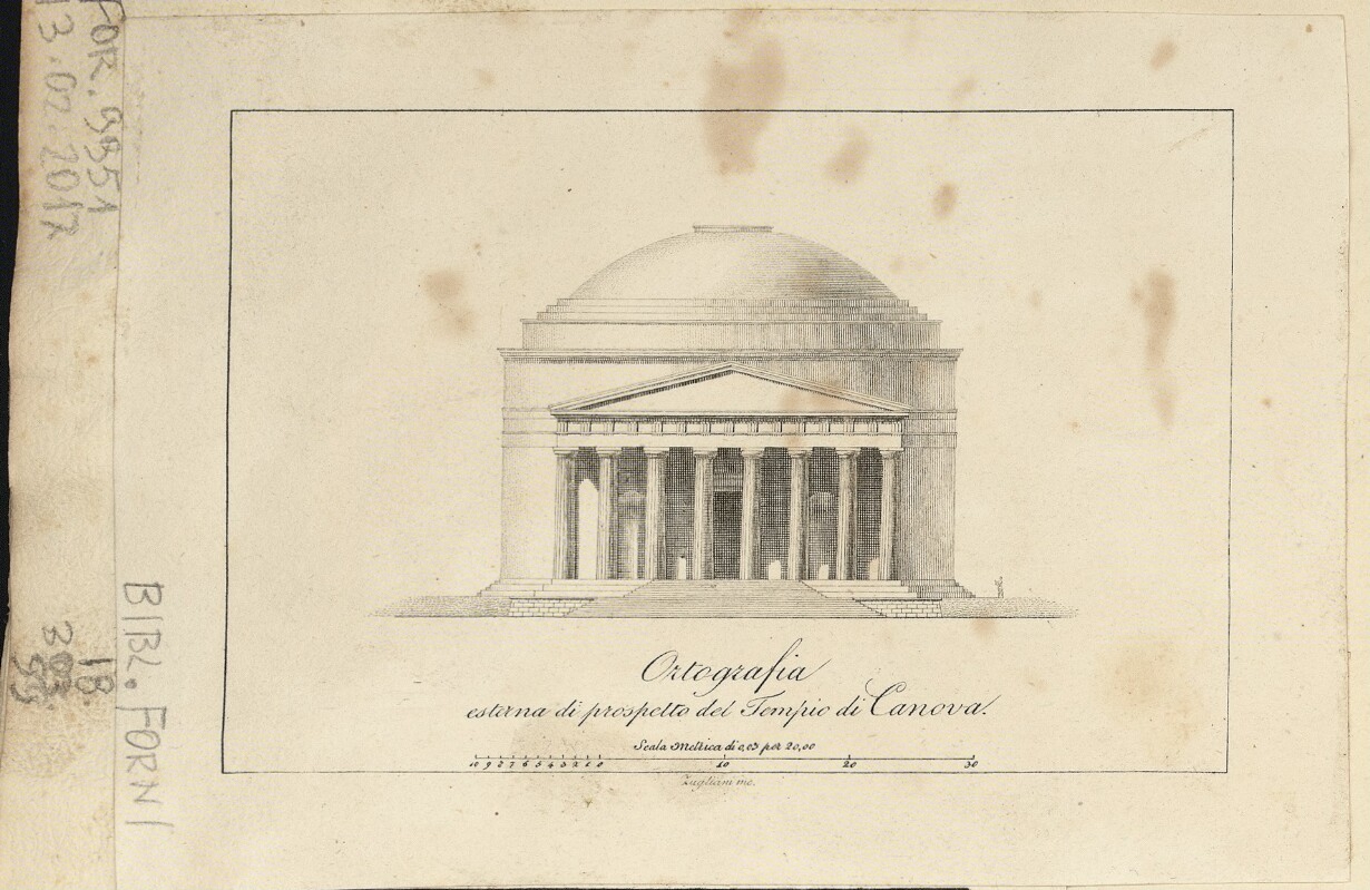 Ortografia esterna di prospetto del Tempio di Canova