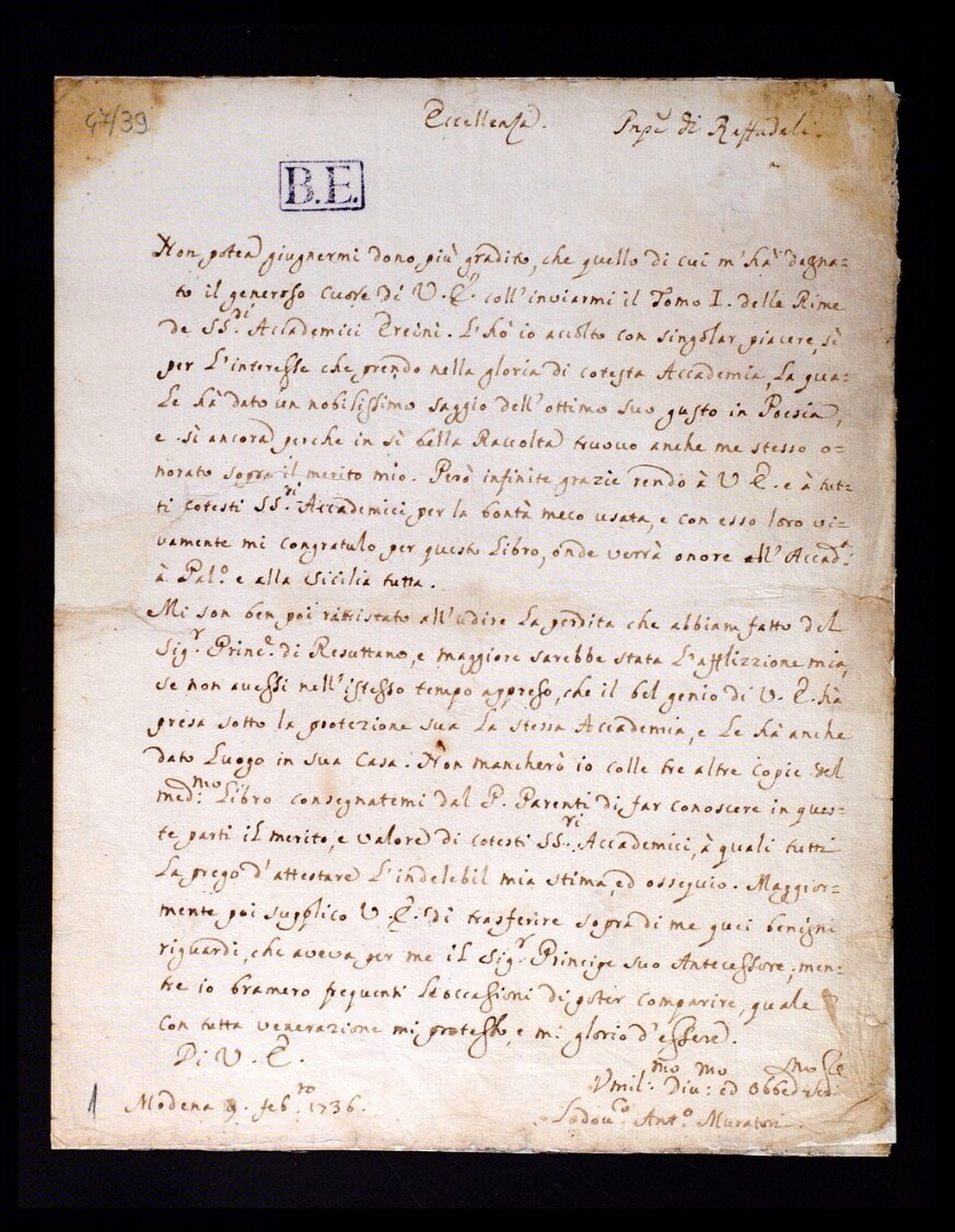 Lettere di Muratori, Lodovico Antonio a Montaperto, Bernardo (s.d.)