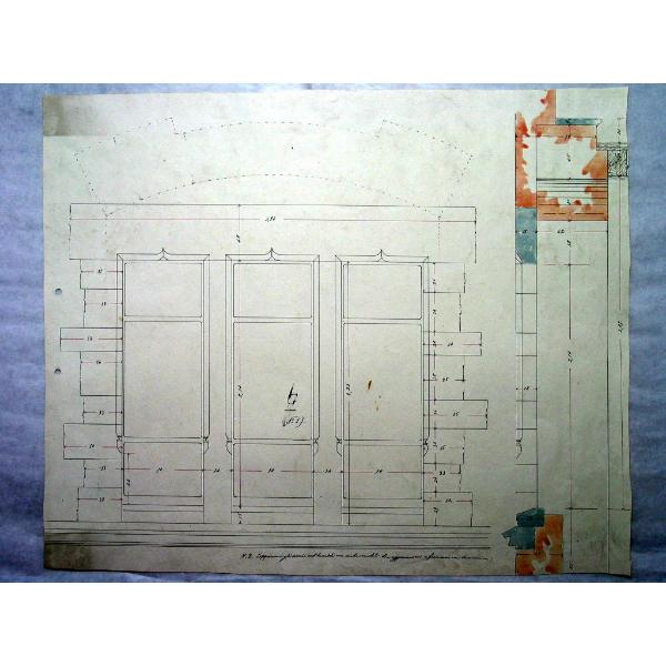 Gressoney- Villa Borgogna, particolare di porta, prospetto e sezione