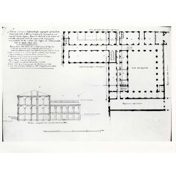 Orfanotrofio aggregato all'ospedale di Alessandria - Pianta e sezione
