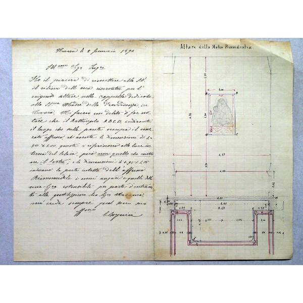 Chiesa del Monserrato a Novara - Schizzo dell'altare della Madonna, pianta e prospetto
