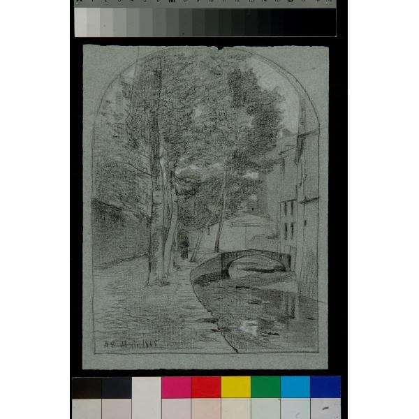 Scorcio di paese con torrente (S. Margherita?)