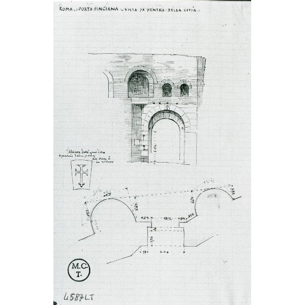 Roma - Mura aureliane, Porta Pinciana, veduta interna e pianta