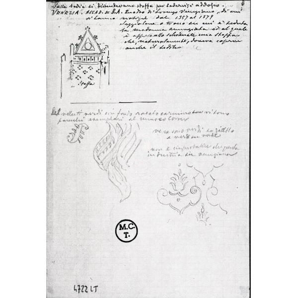 Venezia - Accademia di Belle Arti, particolare di trono e di velluti (da un dipinto di Lorenzo Veneziano)