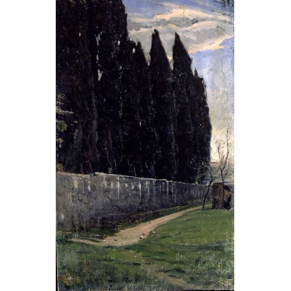 Albaro - Muro di cinta con cipressi (studio per il dipinto Partita alle bocce)