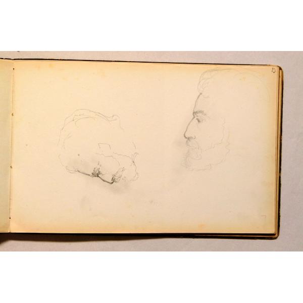 Due teste d'uomo barbuto, di profilo