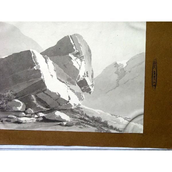 Studio di enormi massi in un avvallamento tra monti