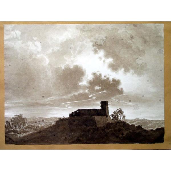 DE GUBERNATIS Giovanni Battista, Castello diroccato in cima a un'altura con effetto di bufera e di temporale