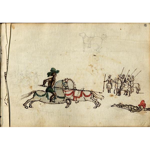 matita, penna a inchiostro bruno, inchiostro bruno a pennello e acquerello su carta bianca