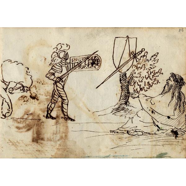 Anonimo Italiano incisore ; sec. 19. ; omonimi non identificati, [Guerriero seduto con scudo e lancia]